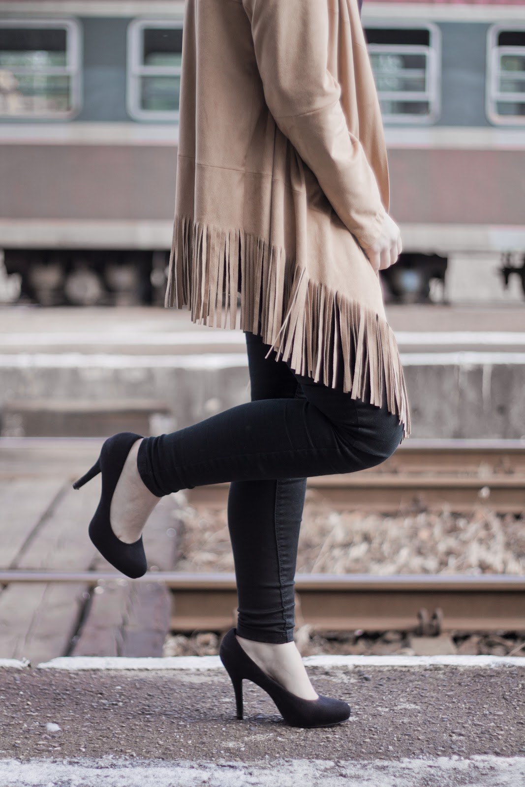 Cześć! W dzisiejszym poście pokaże Wam jak prezentują się hity trwającego sezonu. Frędzle od zawsze były mi bliskie, uwielbiałam je i tak już zostało. Czuję się w nich bardzo dobrze- zwiewnie, dziewczęco a co najważniejsze bardzo wygodnie. Poncho z irchy jest tak wygodne, że nie oddałabym go nigdy, nikomu. Lubię proste i eleganckie rozwiązania. Do tego zwykłe czarne spodnie, koszulka oraz szpilki, klasa sama w sobie. Dodatki, które wykorzystałam do owego outfitu to srebrny zegarek z mini brylancikami, delikatny naszyjnik oraz bransoletka. Ostatnio mam jakąś ''manie'' mówiąc kolokwialnie na zegarki i okulary przeciwsłoneczne. Wiem, że moja figura nie należy do chudych, więc myślę, że się nie pogniewacie na mnie gdy będę dodawać co jakiś czas pewne rady dietetyczne; przepisy aby poprawić swoją figurę, sama coś o tym wiem dlatego też chętnie podzielę się z Wami tym co można zrobić w niewielkim przedziale czasu- a można naprawdę wiele, trzeba tylko chcieć, to już połowa sukcesu!